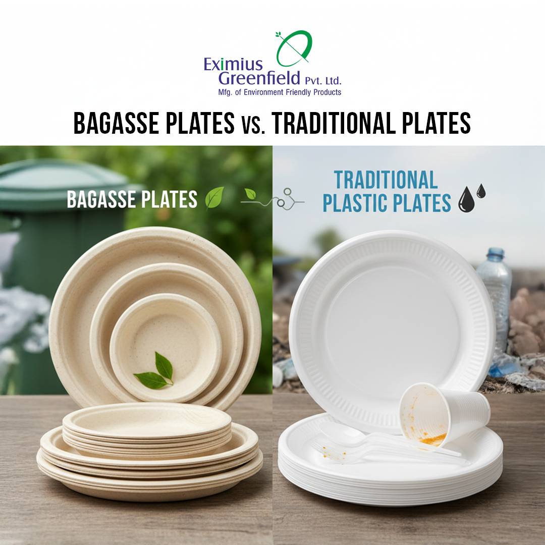 By supporting Bagasse tableware suppliers like Eximius Greenfield—a premier compostable bagasse packaging supplier in India—you contribute to a ripple effect of positive change. Their product range includes square plates, round plates, compartment plates, bowls, and clamshells, all designed for durability and eco-friendliness.